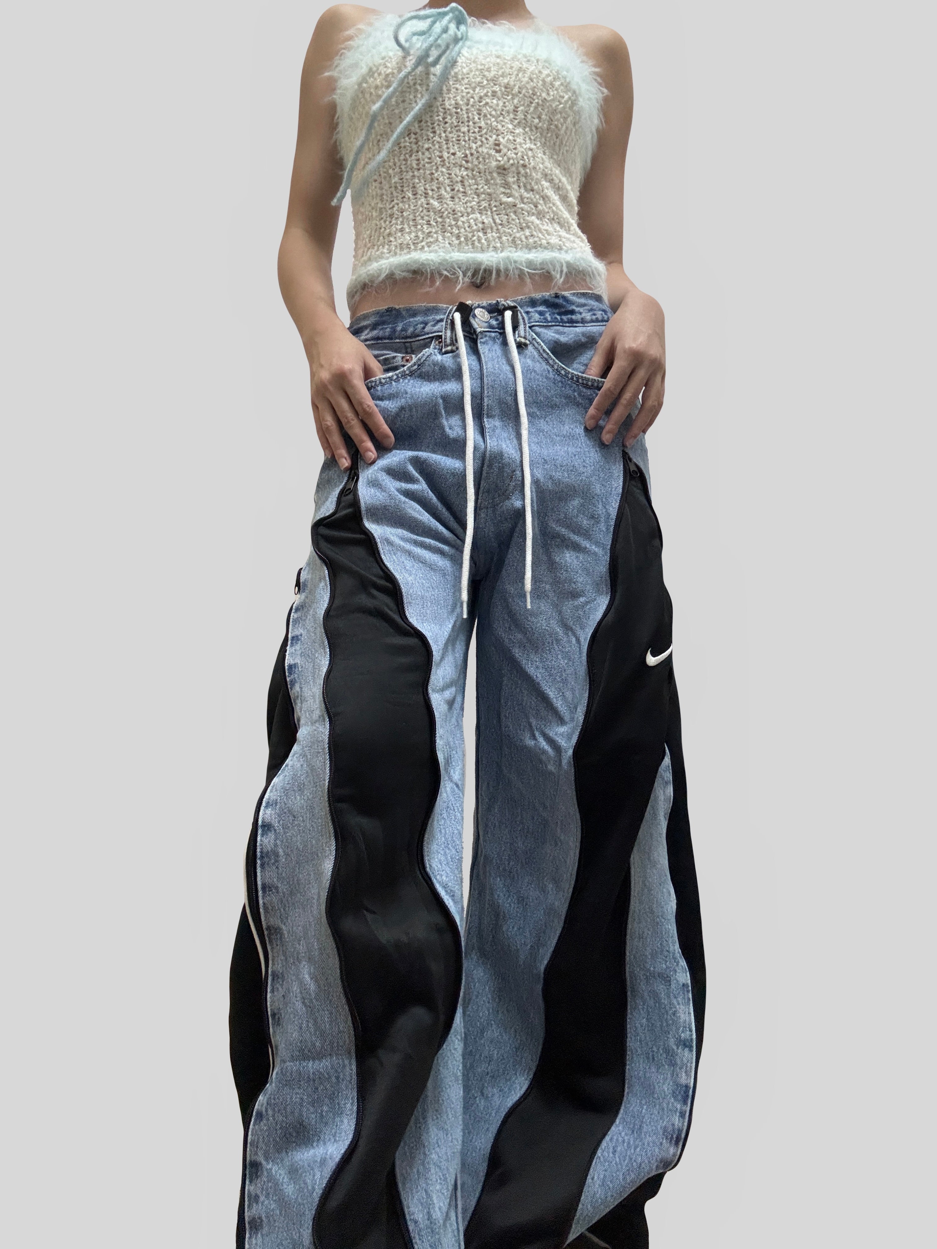 🔹Length: 39”Remade from sport brands sweatpants and Levi’s jeans👖