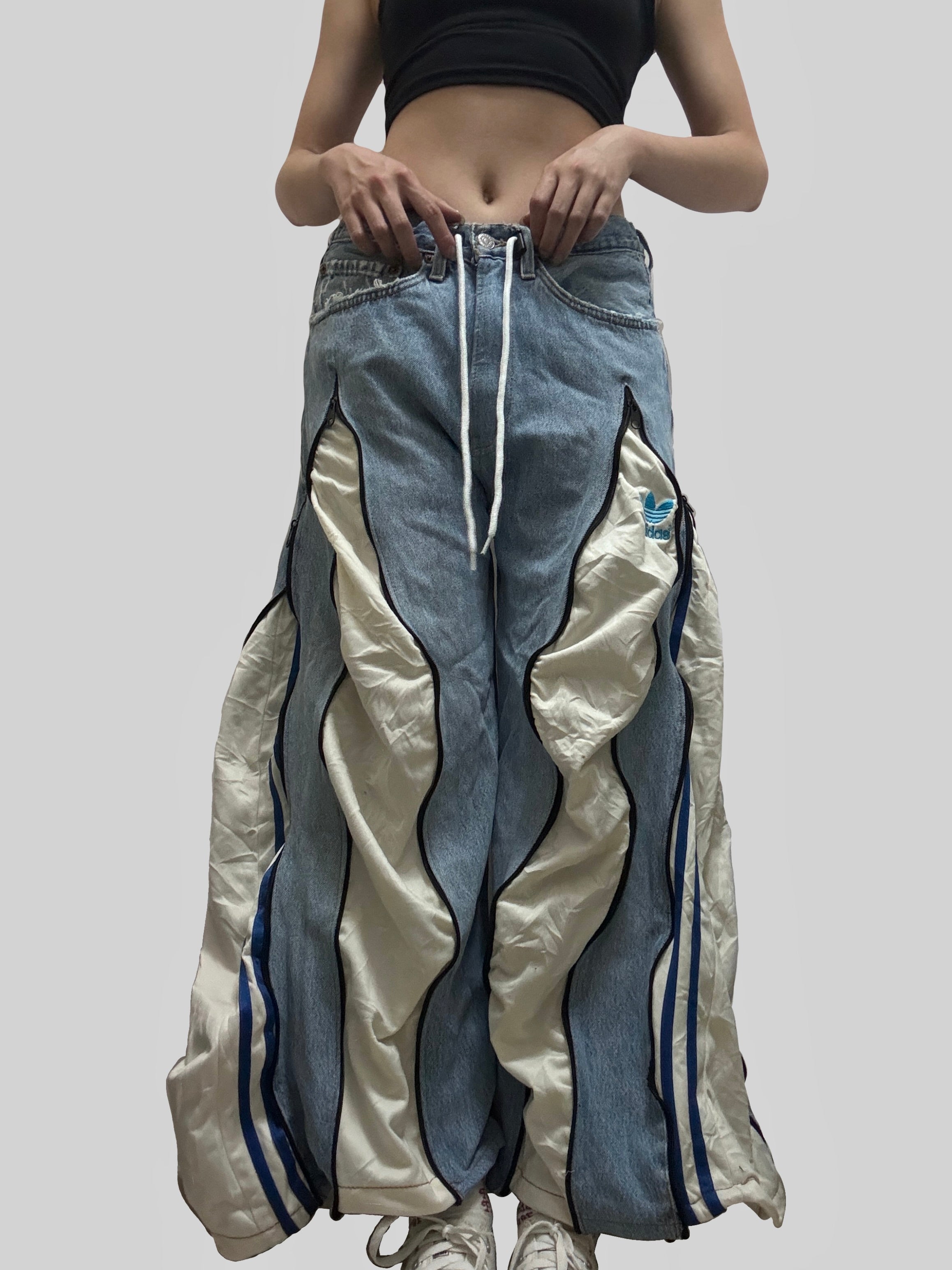 🔹Length: 35”Remade from sport brands sweatpants and Levi’s jeans👖
