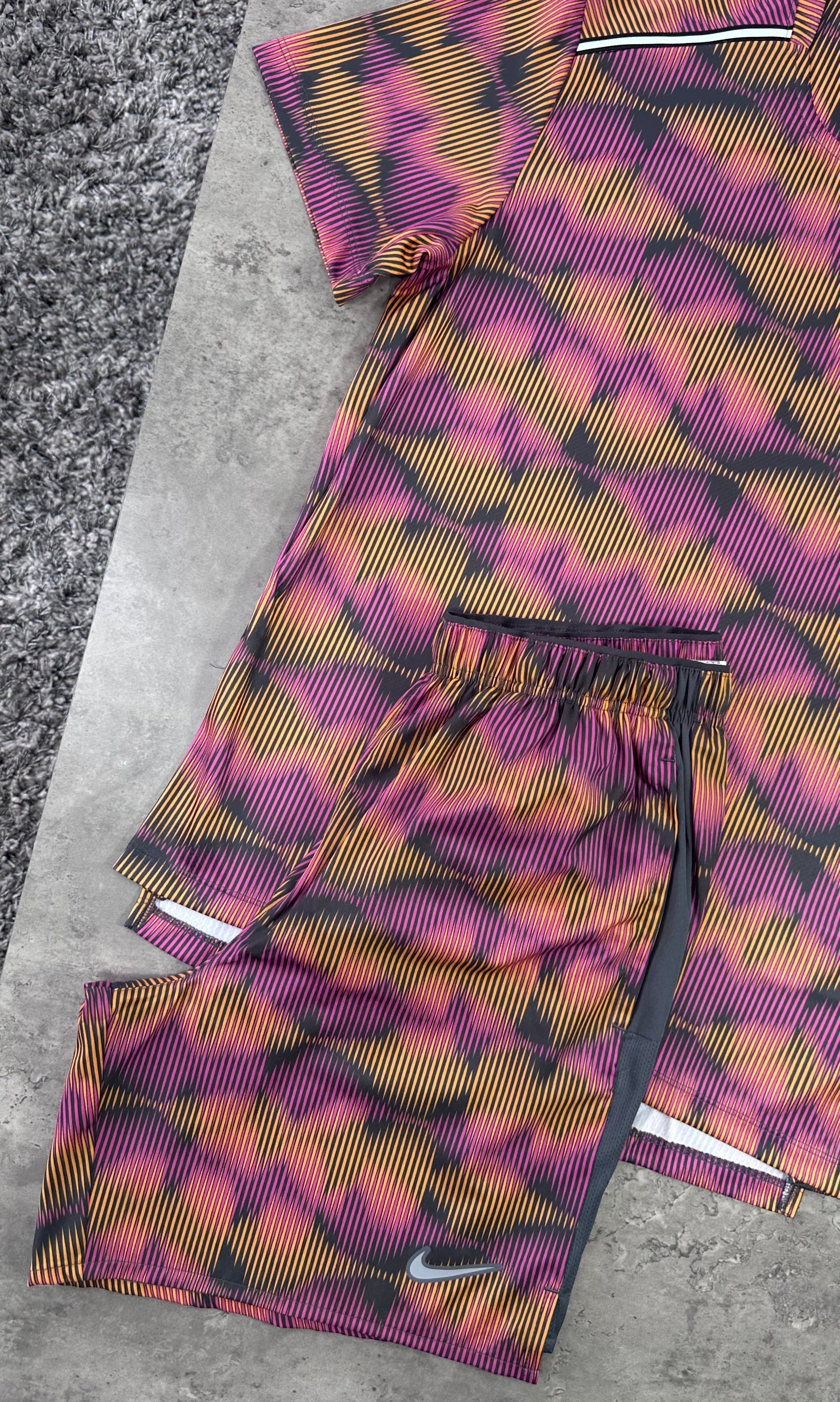 The NIKE MILER SET - MULTI features a sweat-wicking Miler Top with an extended length and ultra-lightweight fabric, providing enhanced coverage without added weight. Its breathable, relaxed fit ensures comfort and freedom of movement during activity. Complementing the top, the shorts are crafted from lightweight, breathable woven fabric with stretch for flexibility. Multiple pockets offer convenient storage for essentials, making this set ideal for performance and everyday wear.