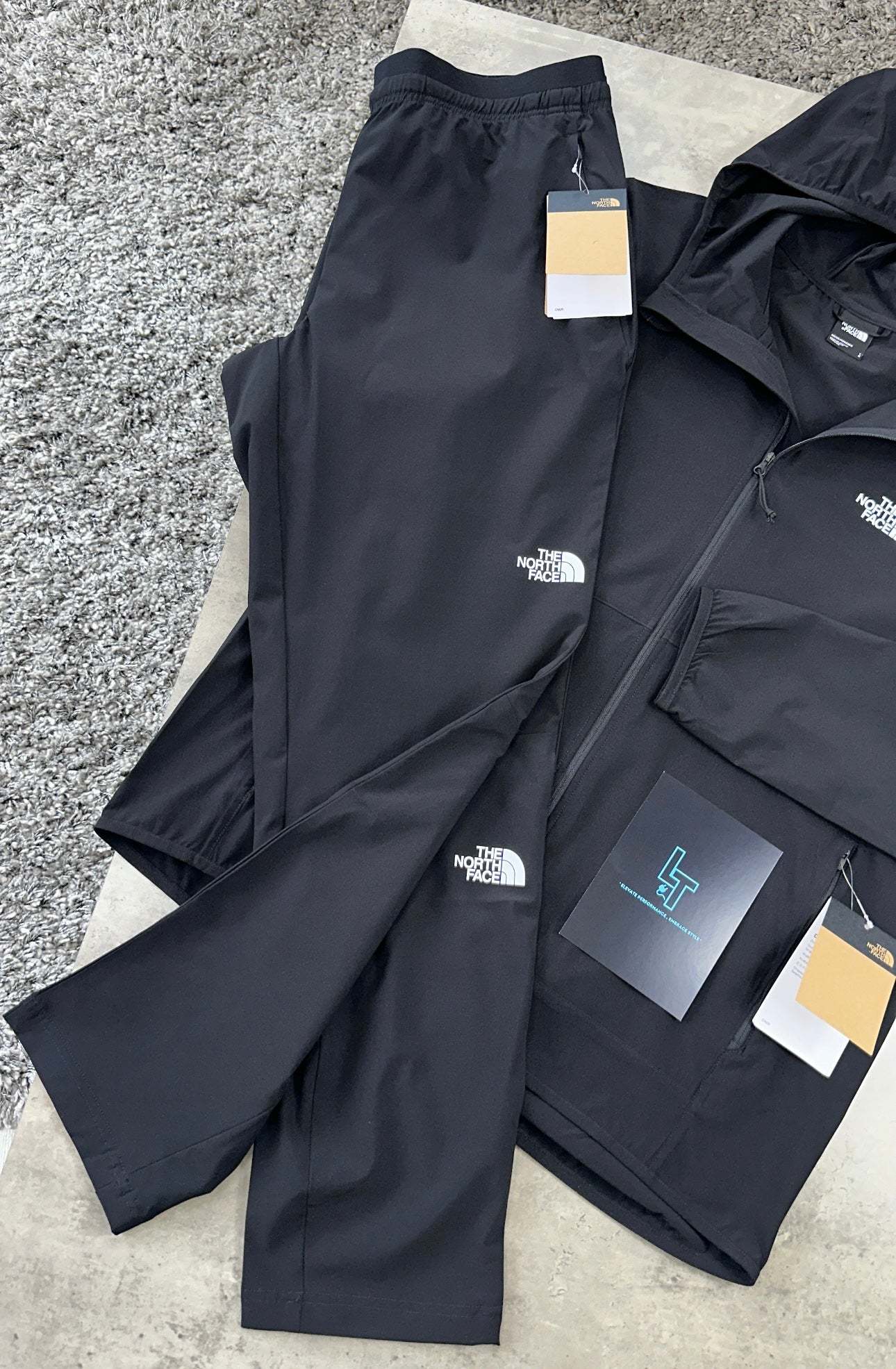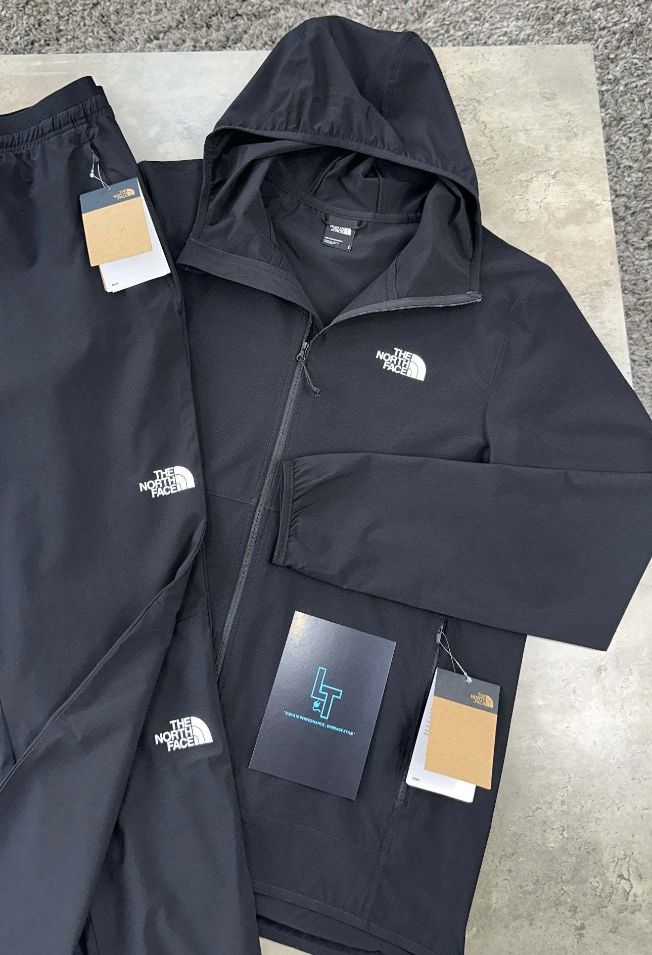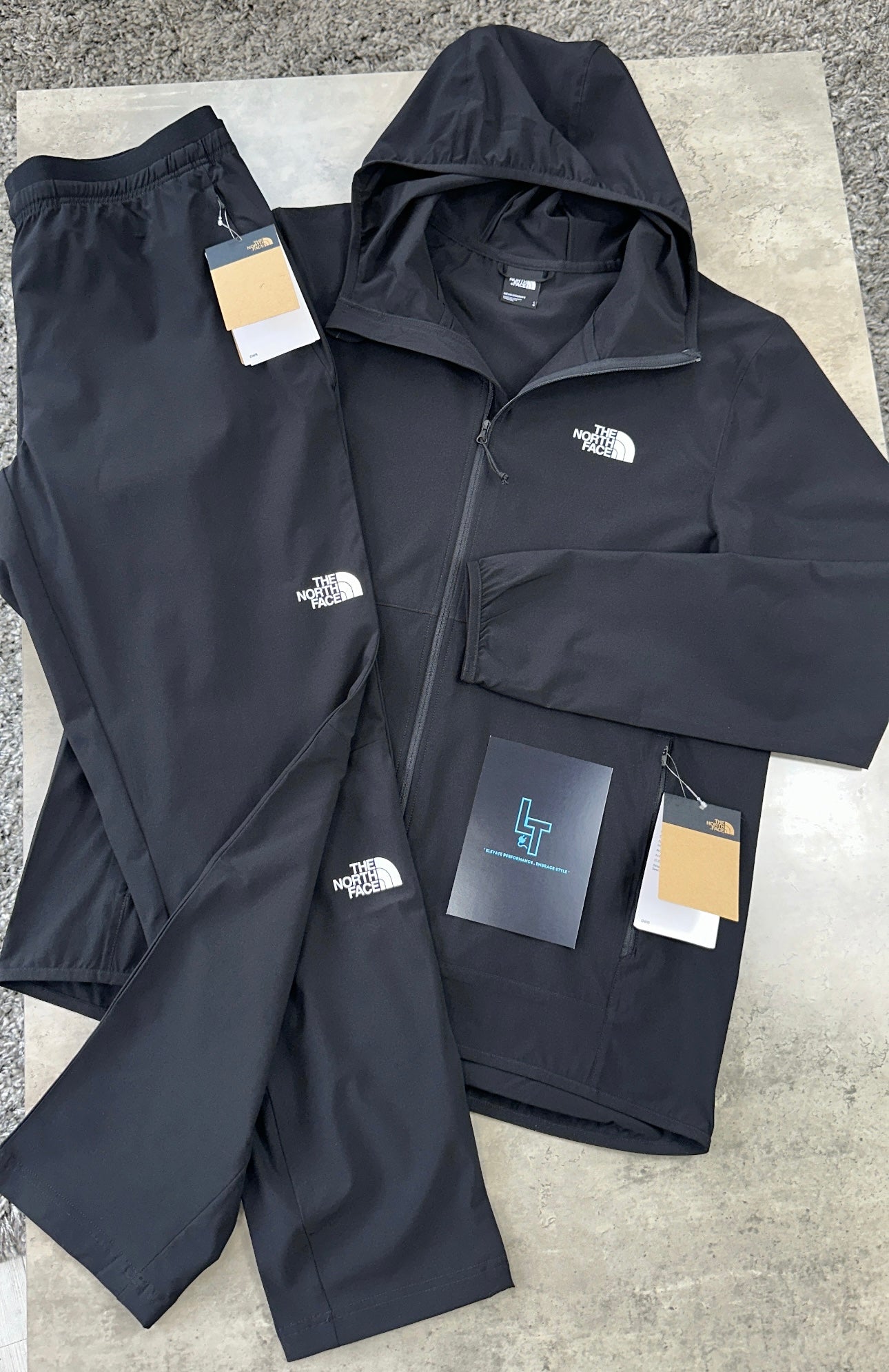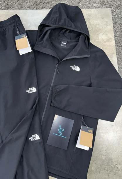 The NORTH FACE WOVEN TRACKSUIT in black provides ultimate comfort and performance for your workout. The 24/7 Woven Hooded Jacket boasts moisture-wicking FlashDry™ technology, while the 24/7 Woven Pant offers flexibility and durability. Train in ease and style with this versatile tracksuit.